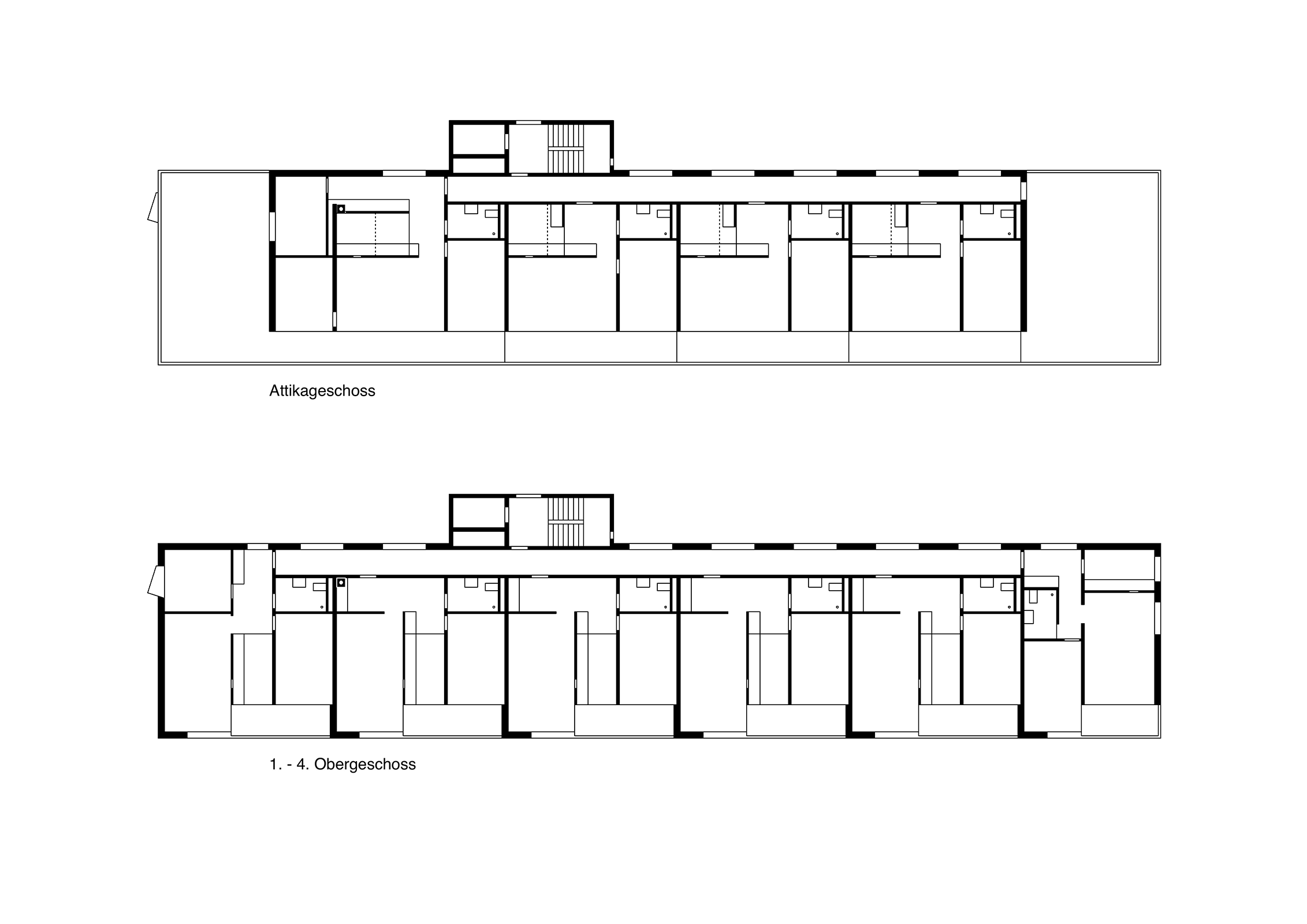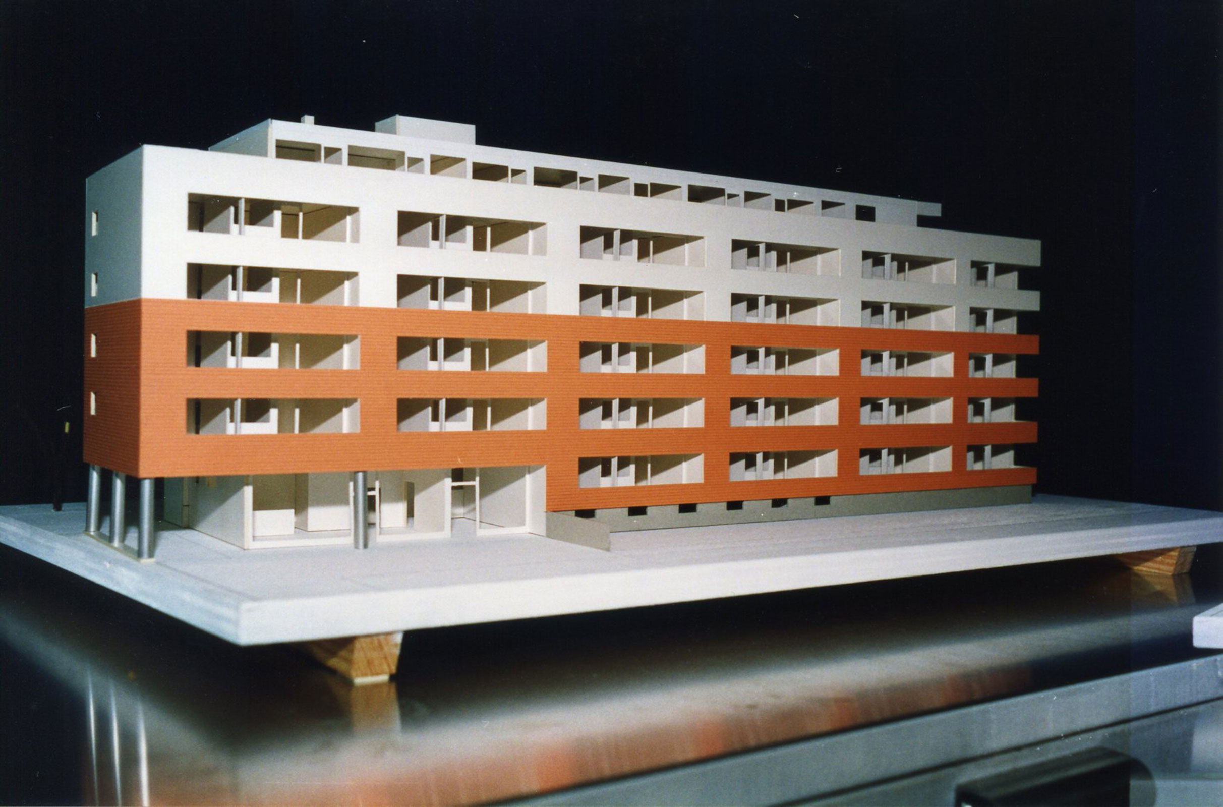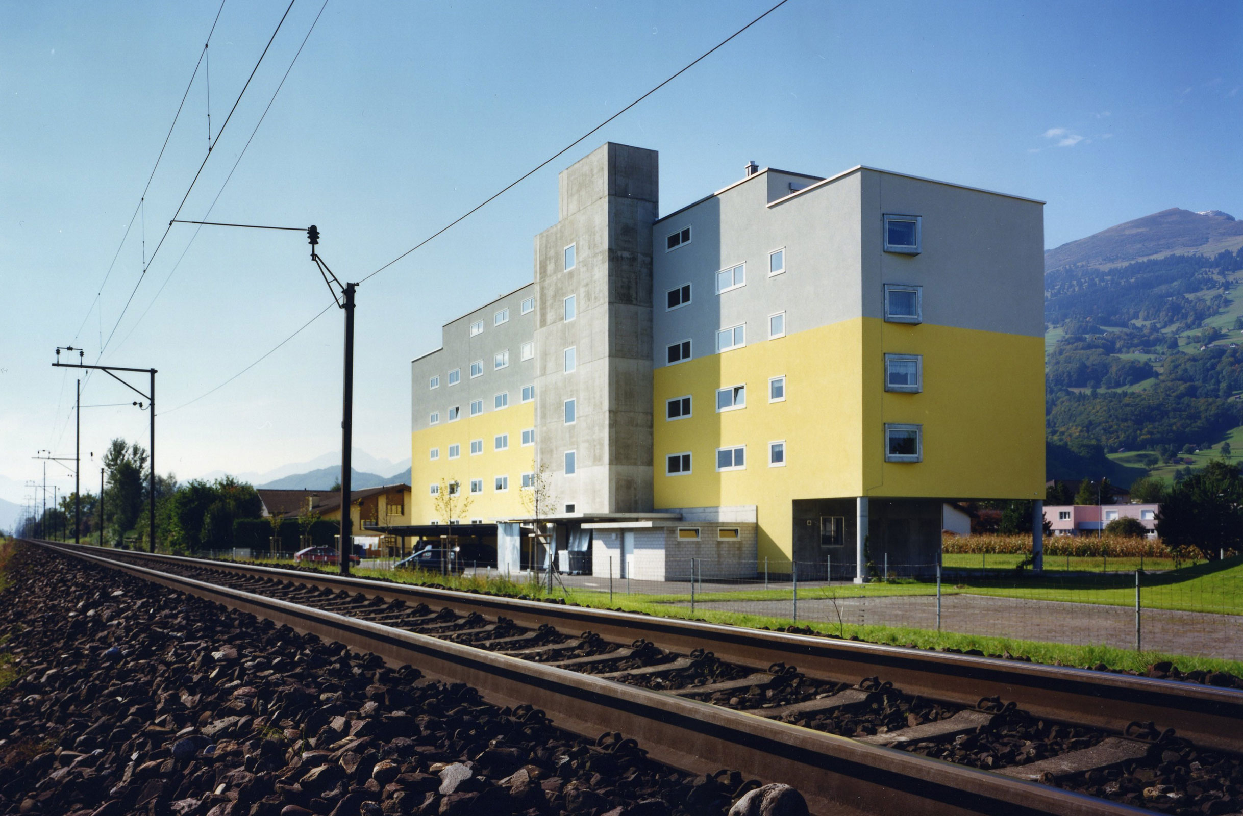 Das Gebäude mit 32 Kleinwohnungen liegt in einem Wohnquartier an der Bahnlinie. Der ökonomische Umgang mit dem Bauland, sowie die Wechselwirkung zwischen Grundrisstypologie und baulichem Schallschutz haben den Entwurf wesentlich beeinflusst.