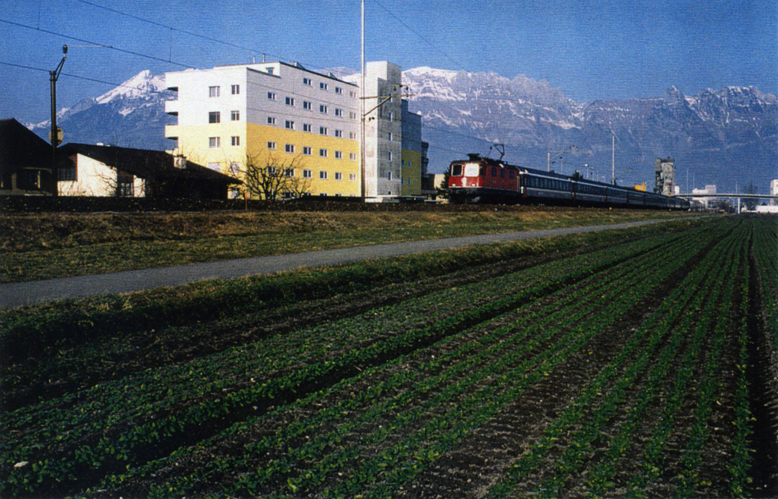 Alle Wohnungen sind der Bahn abgewandt gegen Westen orientiert.