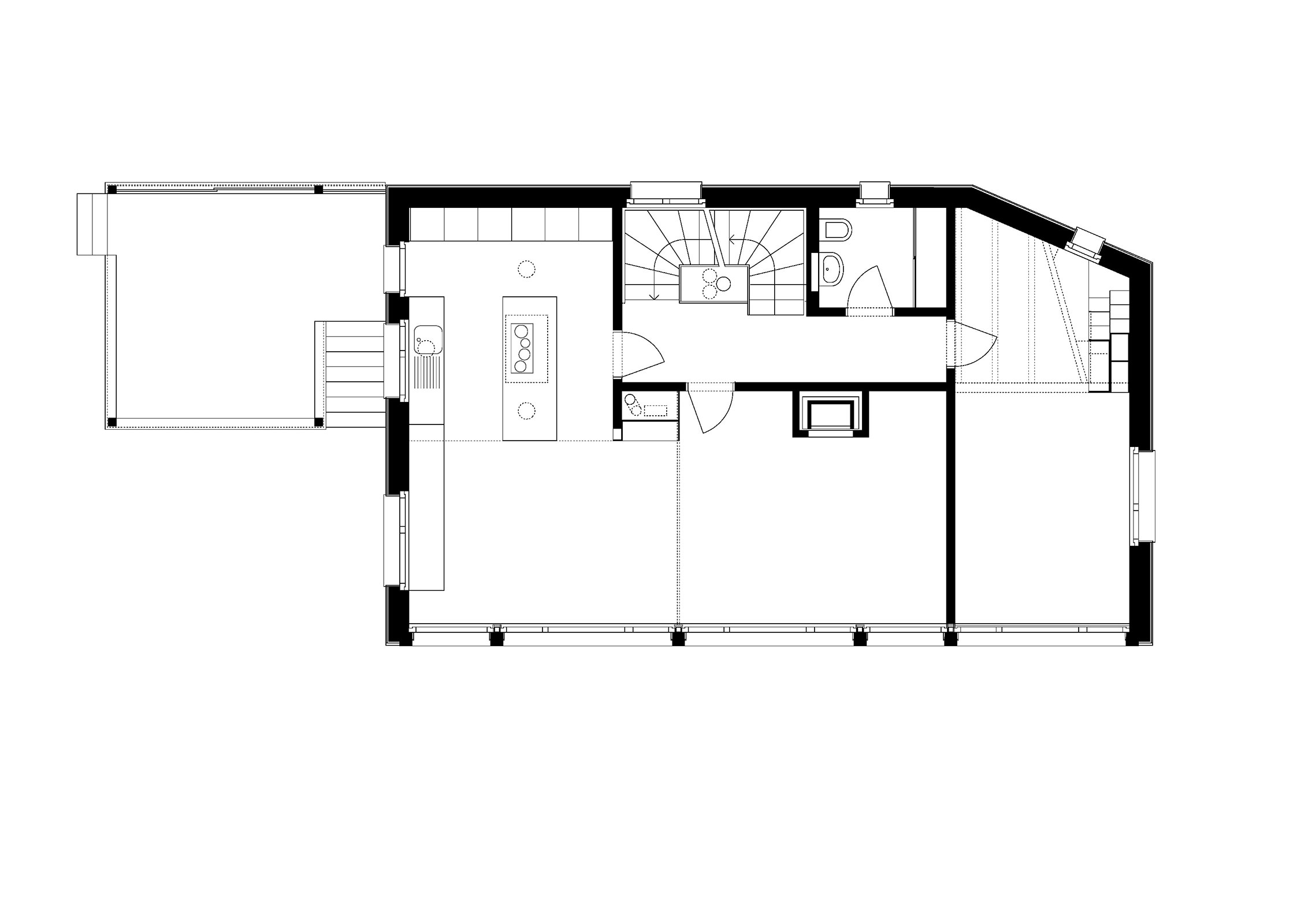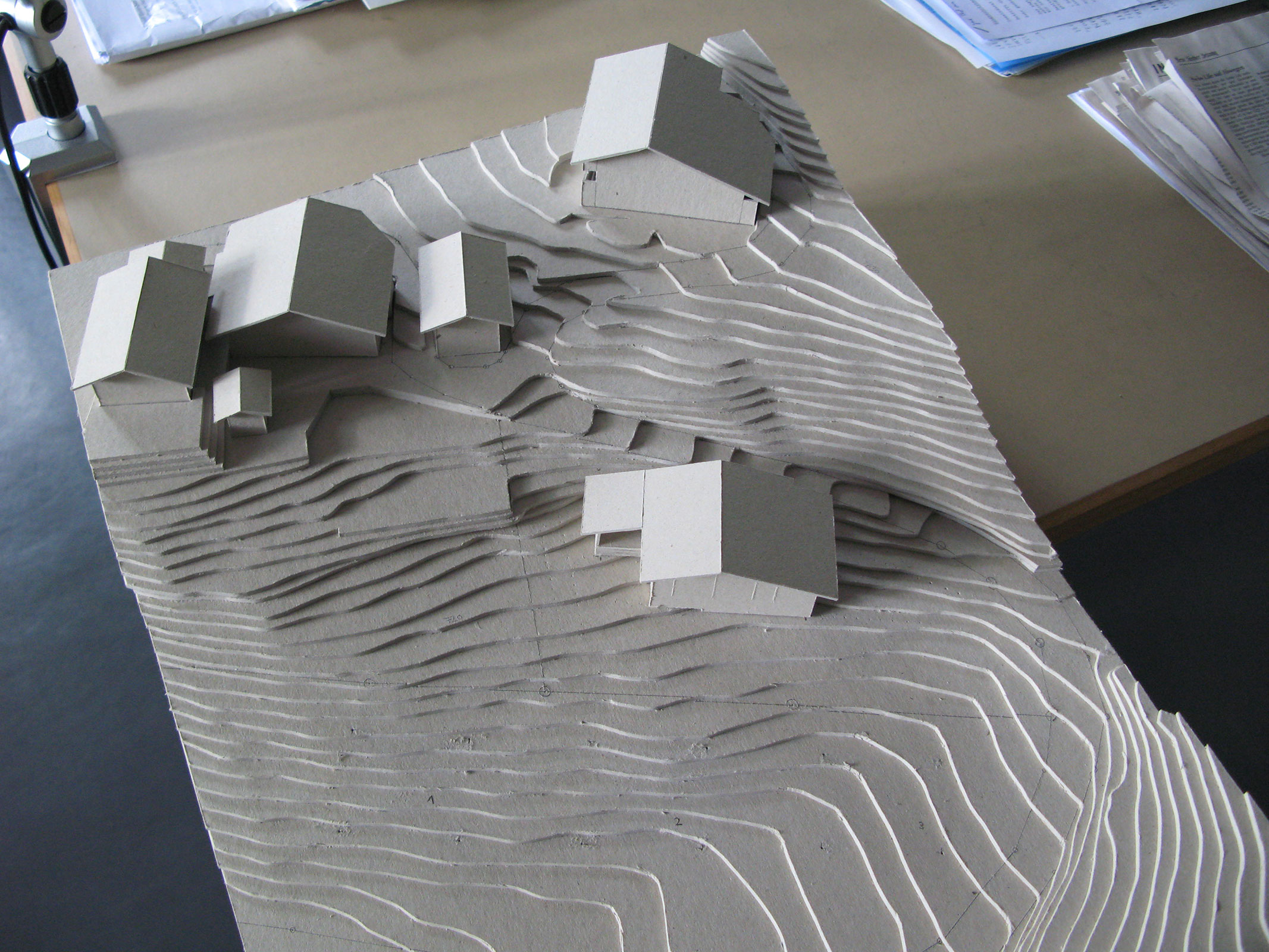 Diese Grundprinzipien aufnehmend versucht der Entwurf eine substanzielle, auch heutige Mittel einsetzende Annäherung an die traditionelle Bauweise. Formal wird zu Gunsten einer soliden Behäbigkeit auf abstrahierende Anstrengungen verzichtet.