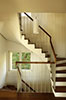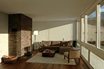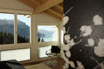 Das Haus ruht auf einem Untergeschoss aus Beton das keine Wohnräume enthält und einer dem Randbereich der Gefahrenzone des Lammbaches entsprechenden Schlammlawine standhalten würde. Der Eingangsbereich funktioniert als Wärmeschleuse. In der Art eines Iglu-Einganges betritt man den Warmen Bereich des Hauses von unten. In den mit Holz verkleideten Obergeschossen profitieren die Haupträume von der atemberaubenden Aussicht und werden zum Teil durch transluzente Latentspeicher in den Brüstungsverglasungen beheizt. Die Nebenräume sind bergseitig angeordnet. Der gedeckte Sitzplatz und zwei Gartenterrassen sind seitlich angeordnet und konnten deshalb - wie der benachbarte Bauerngarten - mit niedrigen Stützmauern in die Topografie eingefügt werden. Die Wohnräume werden von dunklem Nussbaumparkett geprägt. Markante Körper aus farbig lackierten Holzwerkstoffplatten oder aus Natursteinen setzen Akzente. Die Wärme für Bodenheizung und Warmwasser wird von einer solar unterstützten Luft-Wärmepumpe erzeugt.